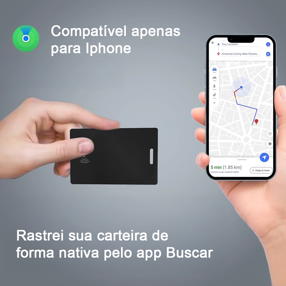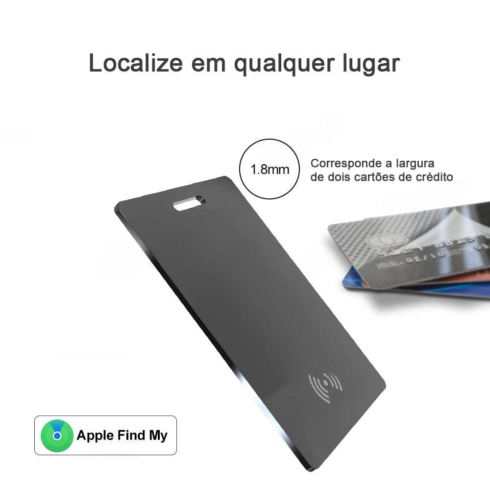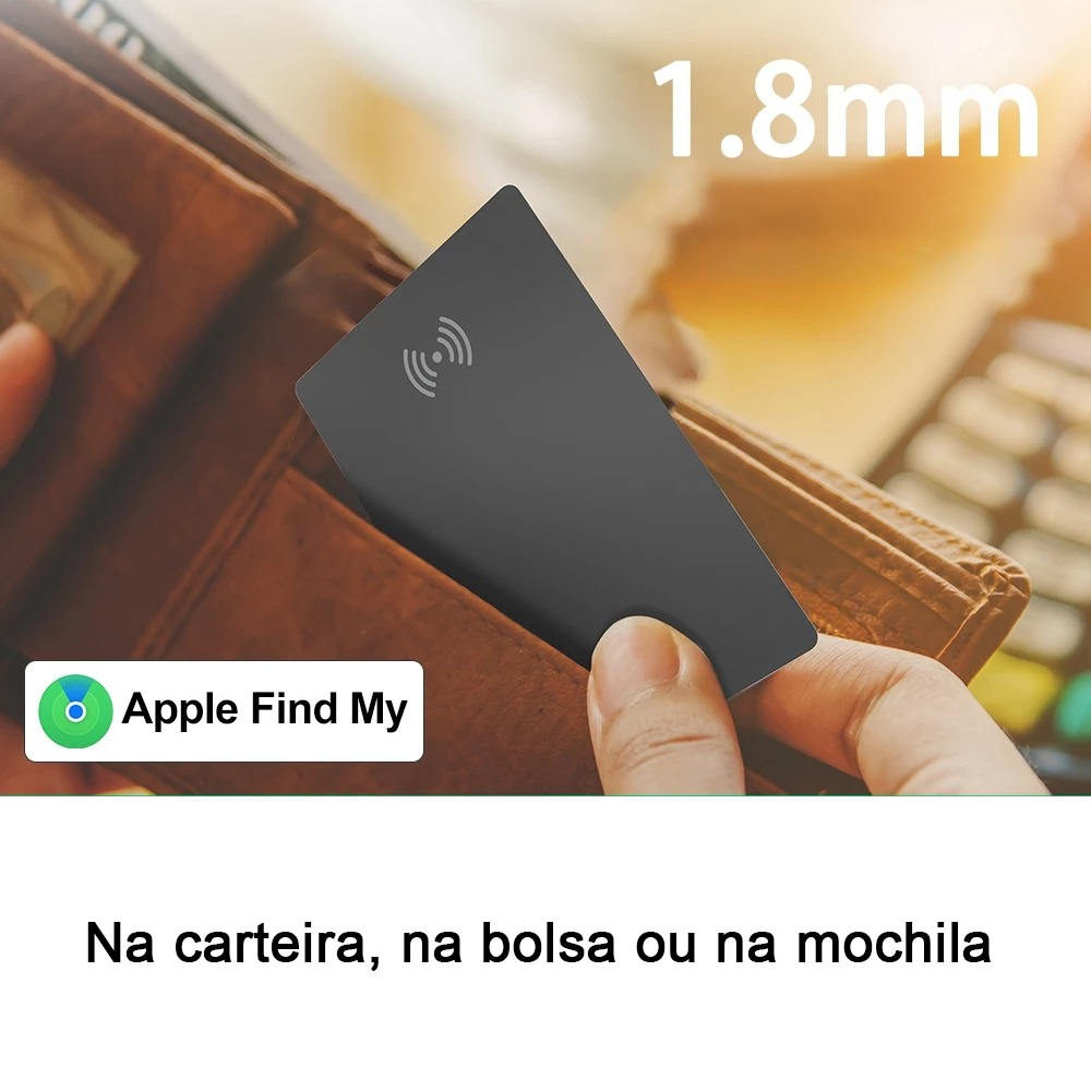 Cartão de rastreamento para carteiras com rastreamento apenas para sistemas IOS (Iphone/Apple). Se você perder a carteira ou ser roubado, esteja prevenido com o Carão de rastreamento que é visível direto do seu Iphone no aplicativo buscar.